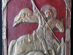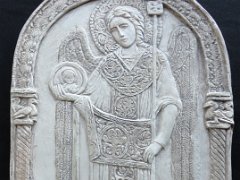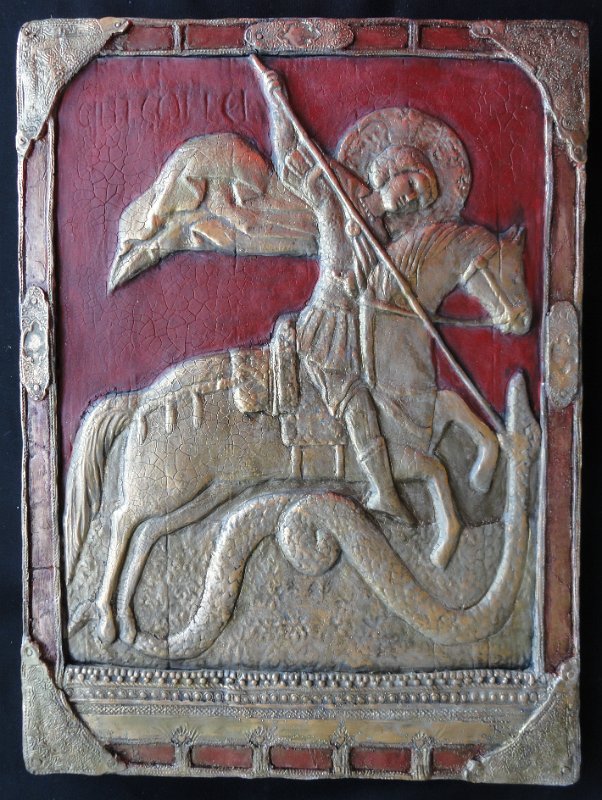 BENEATH OUR FEET 18" x 8.5" (2018) CORALS 19.5" x 11" (2018) JOHN LENNON 7.5" x 8.5" (2018) ANGEL inspired by Albrecht Durer 6.5" x 8" (2018) ARCHANGEL GABRIEL 6.5" x 10" (2018) ARCHANGEL MICHAEL 6" x 9.5" (2018) SEA AND SKY -inspired by M C Escher 8.5" x 8.5" (2018) UNITY 7" x 7" (2018) CRANE 6.5" x 6.5" (2018) Icon of St. George, Ruby Gold, 9.5" x 12.5" (2017)
